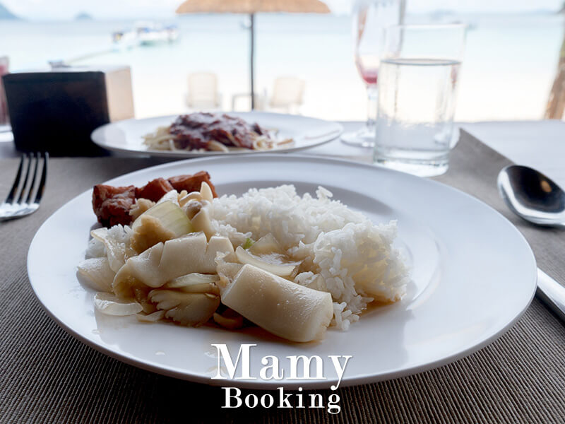 ดำน้ำกันเหนื่อยๆแล้ว เราก็กลับขึ้นฝั่งมาทานข้าวเที่ยงกันดีกว่าครับผม ซึ่งน้องออร์ก้าชอบการบริการของพนักงานที่นี่มากๆครับ เพราะคอยเอาใจใส่ทุกอย่างเลย